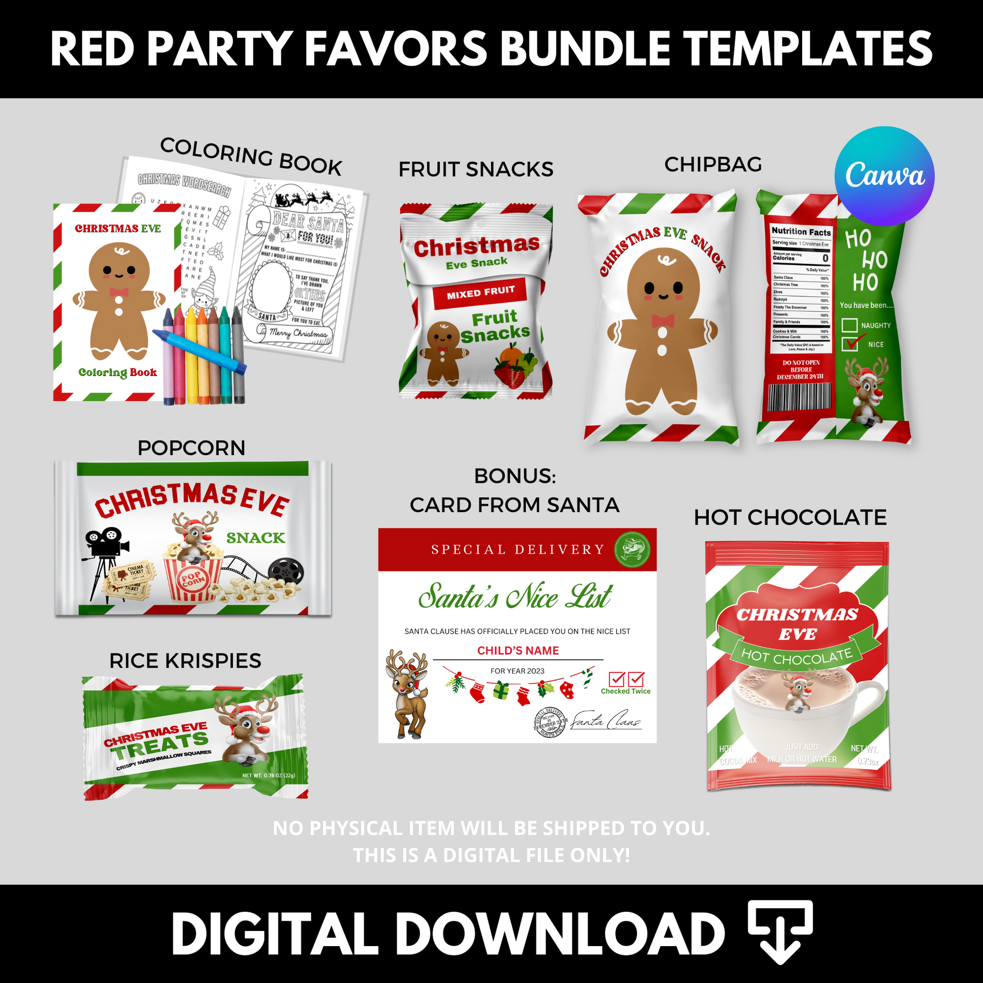 Red Christmas Eve Box Party Favors Bundle